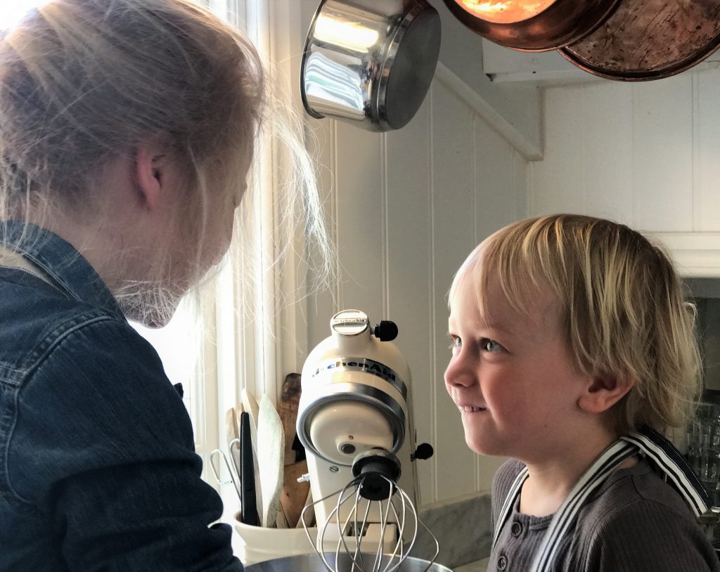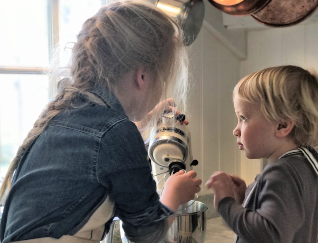 De där två! Han är så älskad av Lovisa att det knappt går att beskriva. Från den dag hon blev storasyster har hon gått all in för sin roll och tar hand om honom så mycket hon bara kan. Här berättar hon hur vispen fungerar och att man måste vara försiktig så att man inte gör illa sina små fingrar. Först var han bara full av bus men sedan trillade polletten ner och allvaret tog över, gullungar!