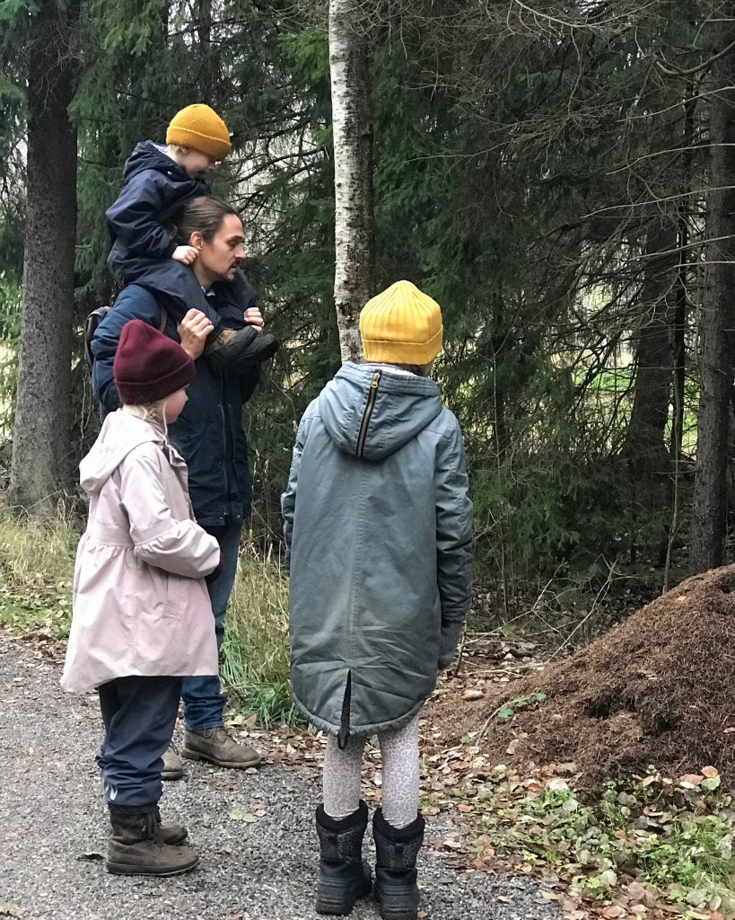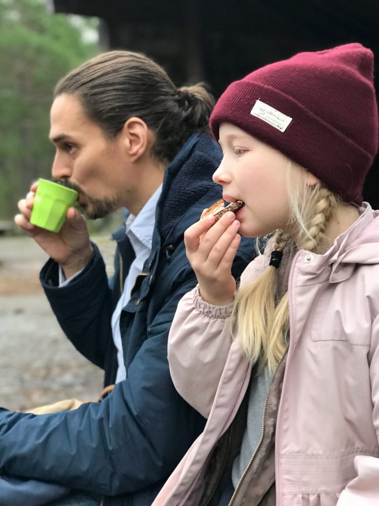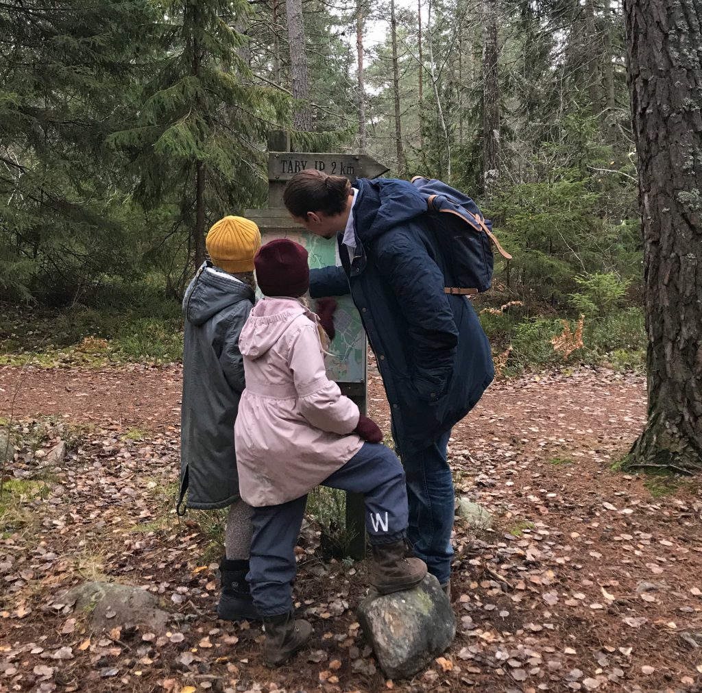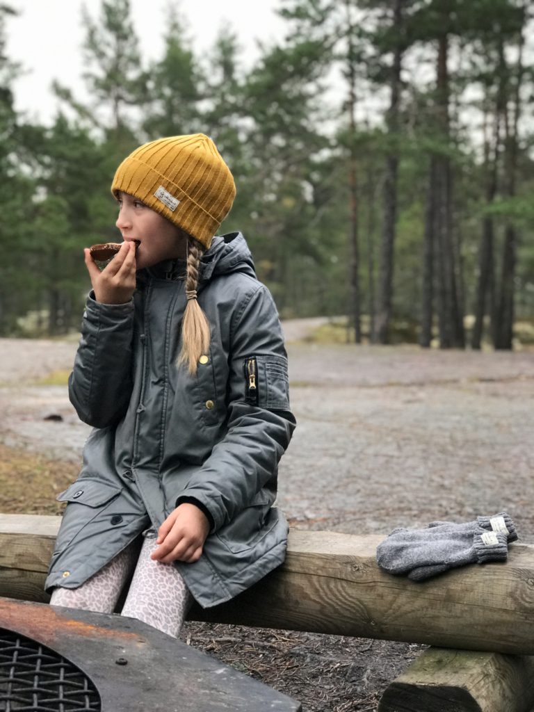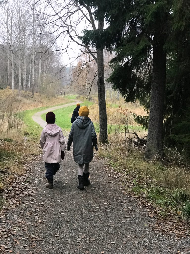 M och flickorna fixade oboy och bredde härliga smörgåsar som de packade ner i ryggan och sedan gav vi oss ut i skogen. Det är verkligen lyxigt med så mycket skön natur alldeles runt husknuten. Det blev en liten lagom strapats då Vilhelm fortfarande var lite trött efter all feber i veckan men han kämpade på riktigt bra. Vi mötte andra pigga skogsmullar och när vi kom upp till picknickplatsen hade vi sån tur att en liten brasa fortfarande pyrde och spred lite värme. Det finns få saker som känns så härligt som att äta medhavda smörgåsar ute i skogen med alla underbara ljud runtomkring.