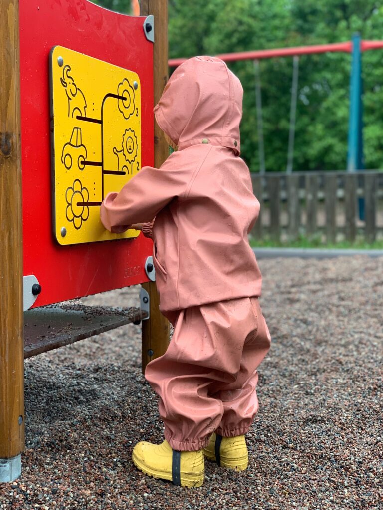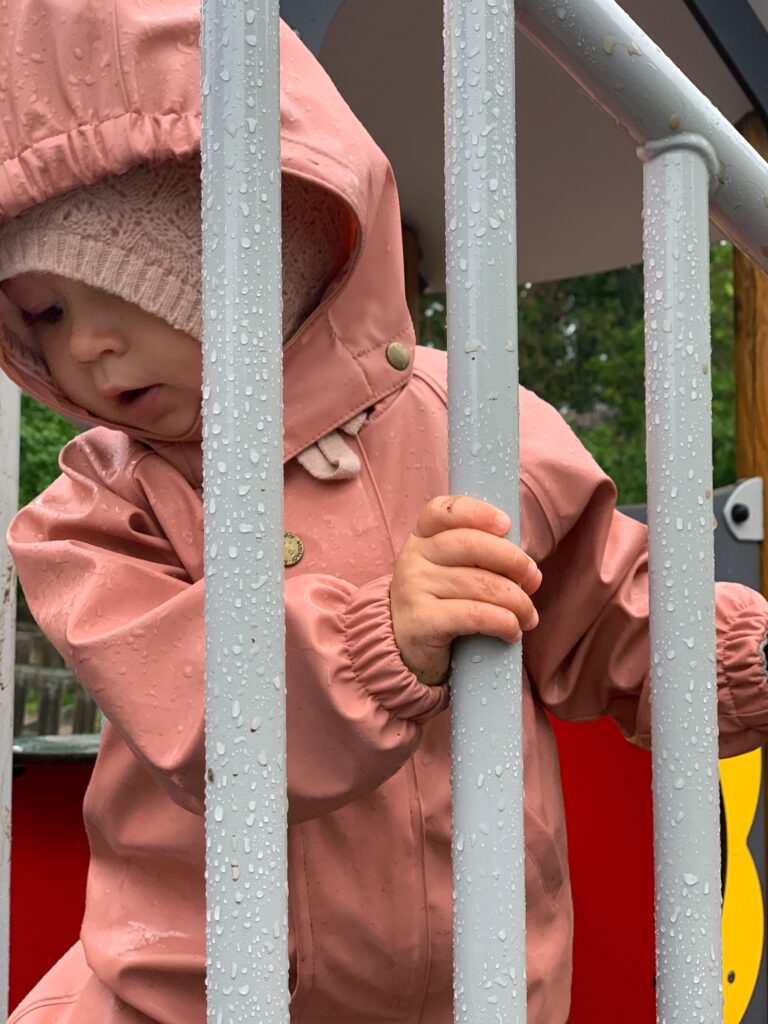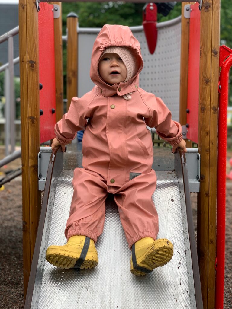 I regnkläder från MarMar Copenhagen och stövlar från Kavat.
