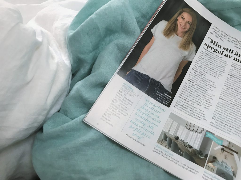 Idag slår jag upp tidningen och läser om… mig :-) Det som är lite extra kul är att jag faktiskt är lika nyfiken som ni på vad det står då jag hade 40 graders feber när intervjun gjordes. Ha ha, ibland är tajmingen inte helt perfekt… Minns den där veckan i någon form av töcken då både lilla Lovisa och jag var helt sänkta av influensan.Nu tassar Vilhelm och vi omkring här och fixar lördagsfrukost med croissanter, bär, ägg och mys… Älskar lata helgfrukostar utan stress och hets. Idag tänkte vi dessutom hitta på något kul med Vilhelm som ju blivit ensambarn under helgen. Än så länge ser han inte alls tjusningen i det utan saknar sina tjejor som han säger. I morse när han upptäckte att de inte var hemma utbrast han;