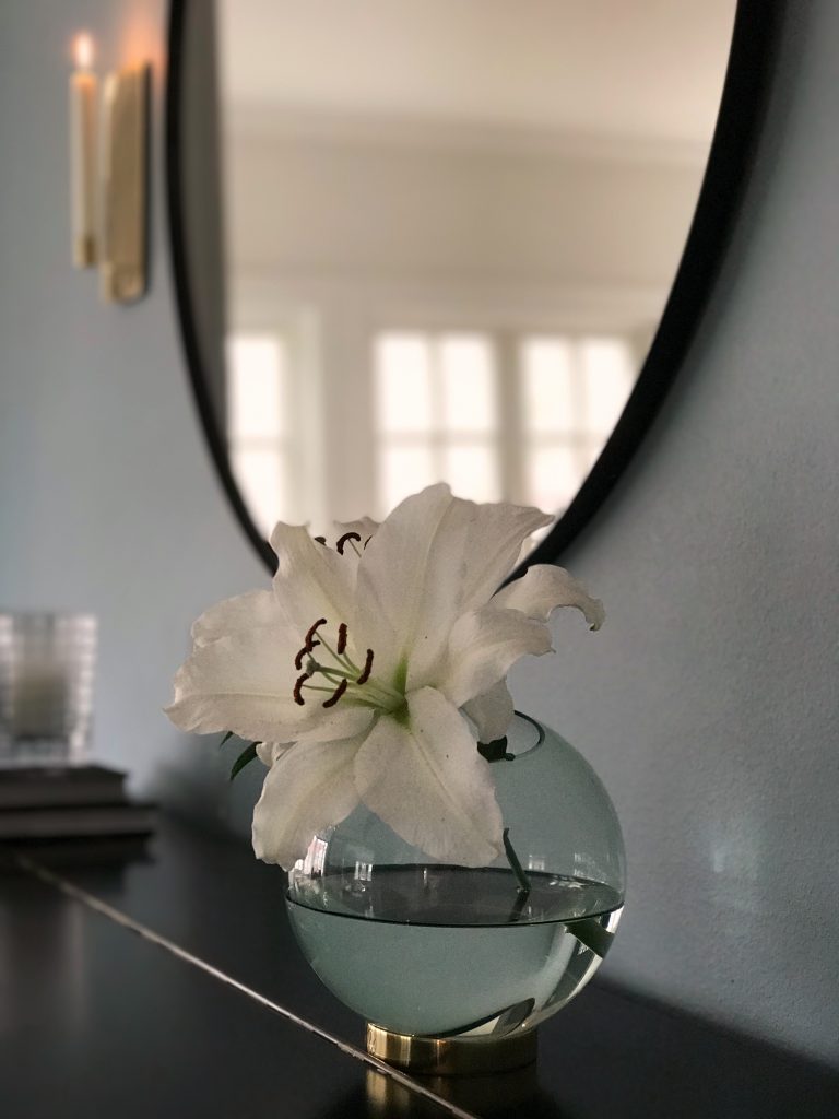 Efter ett besök hos bästa Sima på ByBinett där vi snackade igenom vad min vision var plockade hon fram min drömspegel. 90 cm i diameter av ren och skär kärlek med ett tonat mörkt glas som ger en superlyxig känsla. Den finns i flera olika storlekar (det här är medium) och färger… A true love story!