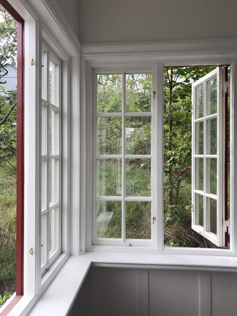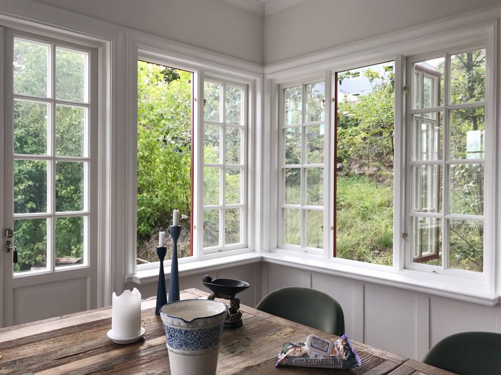 Över till något helt annat. Idag har jag äntligen målat foder och fönsterbrädor i den nya glasverandan. Det är så att jag skäms när jag skriver det men de har liksom fått leva sitt liv med enbart grundfärg i ca 2 år! Hur det är möjligt? Well, när livet rullar på och man levt i totalt renoveringskaos känns grundfärg ganska piffigt om man jämför med ingenting ;-)