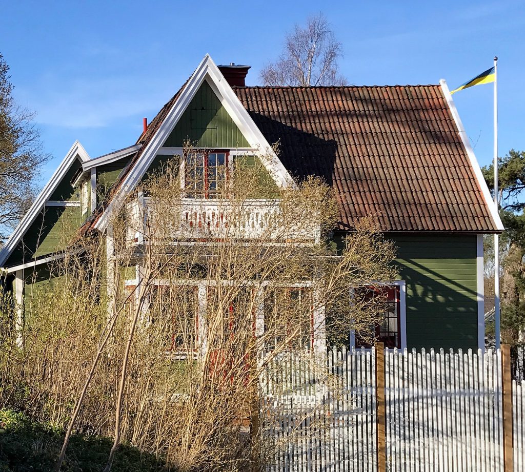 Här bakom staketet och syrenbuskarna har jag på känn att vi kommer vi njuta av många sensommarmiddagar med familj och vänner. Men först skall de där stolparna få lite färg och små hattar. Längtar som en tok efter att få komma in och styla det här området men först får M bygga klart i lugn och ro (eller lätt hetsad av sin fru…).