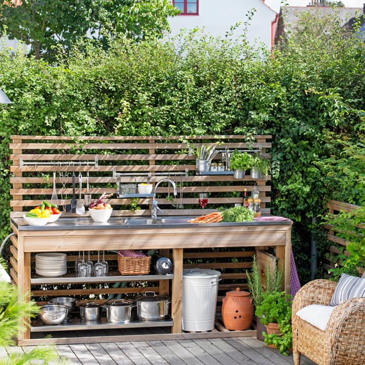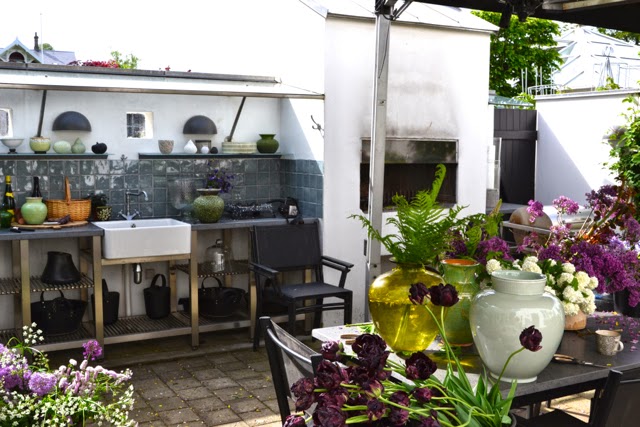 Min man älskar ju att laga mat året om men det är som att hela familjen lever upp när våren kommer och man får grilla utomhus igen. Det skall därför bli extra kul att bygga ihop ett eget utekök fullt av härliga detaljer. jag ser redan framför mig hur krukorna med kryddor hänger i krokar från staketet ovanför arbetsbänken. Lyktor i träden, en härlig loungedel där jag får ett glas rosé medan M grillar och Flipps bygger sina favoriter, capresepinnar. Nu hoppas vi bara på mängder av extra tid så att vi hinner fixa till det här i tid för att kunna njuta av det i slutet av sommaren (erfarenheten säger att det tar tid ;-))