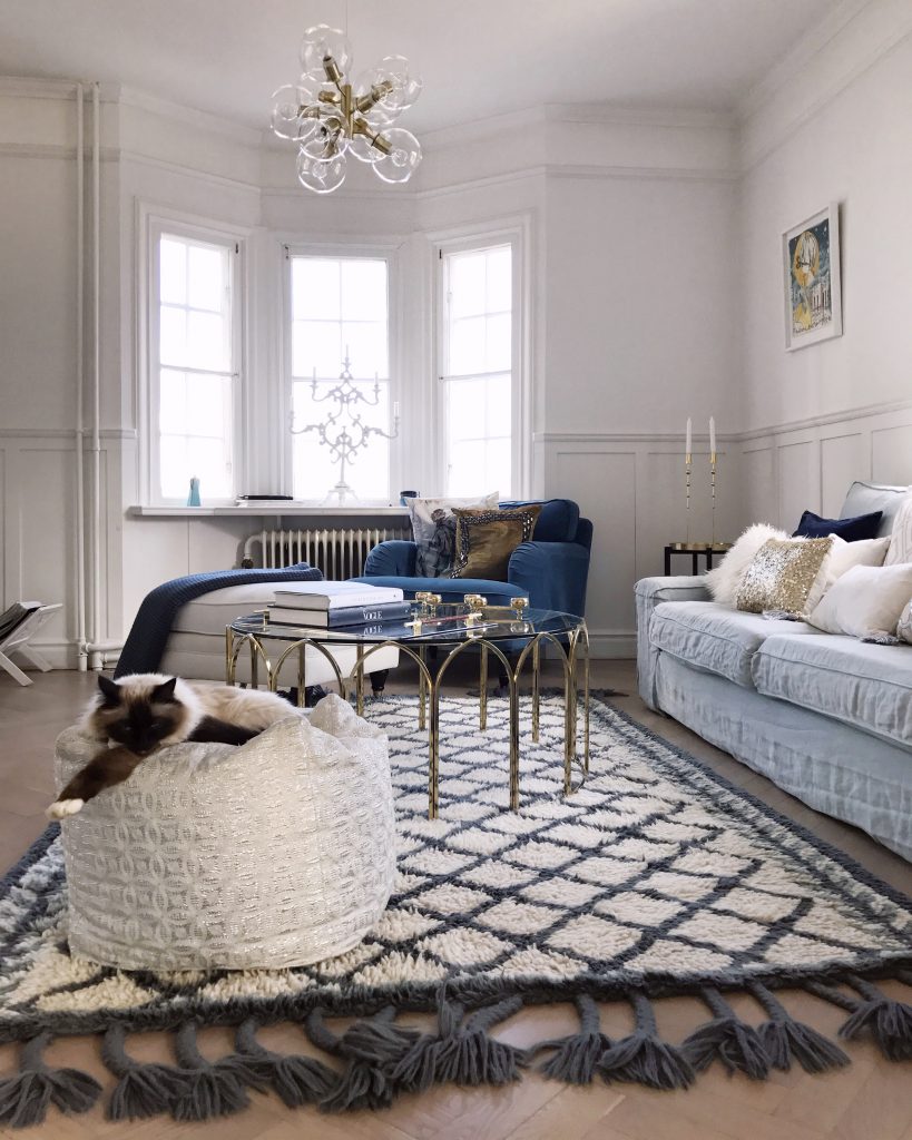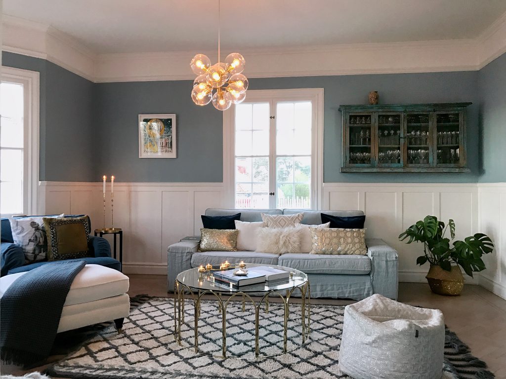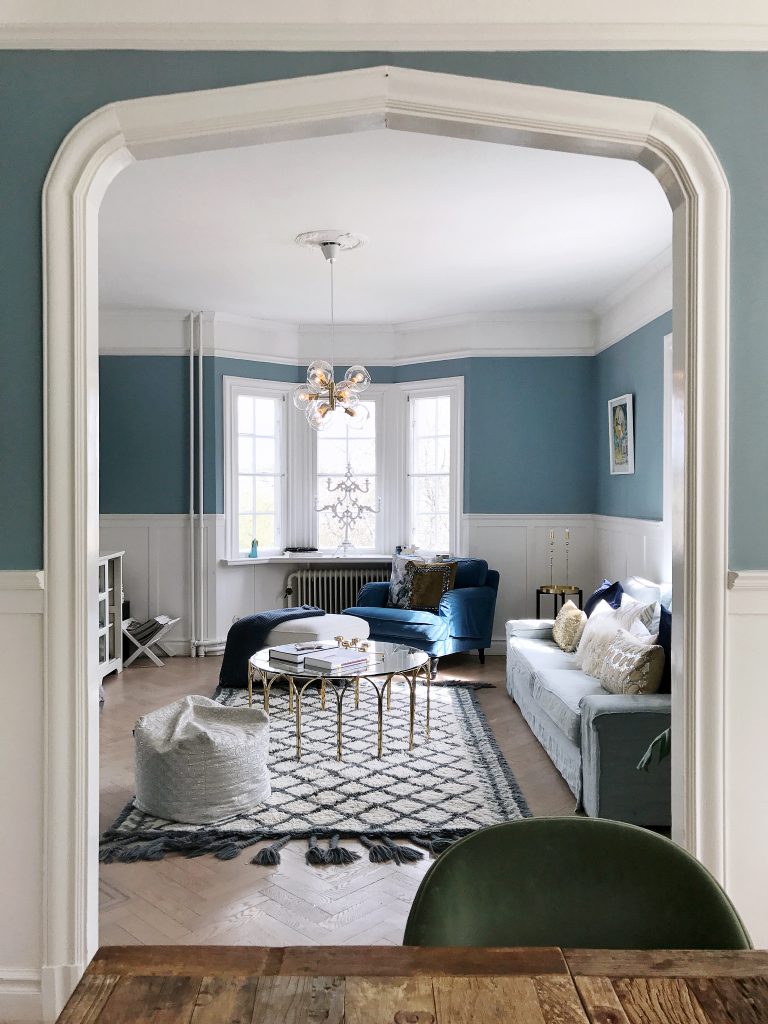 Blå väggar har jag planerat för en längre tid då jag ville ge mer karaktär till hemmet. Dessutom kommer våra möbler få nya textilier från (https://bemz.com/sv?gclid=CM3s74Pv4NMCFQ-UsgodBwQPvQ) alldeles strax och för att de skulle ges den bästa miljön fick färgen komma upp först. Ni anar inte vad jag längtar efter de där överdragen just nu. Det är ju som att lägga pussel, alla bitar måste på plats för att det där helhetsintrycket skall bli precis som man tänkt sig. Eller jag hoppas att det kommer bli precis som jag tänkt mig.
