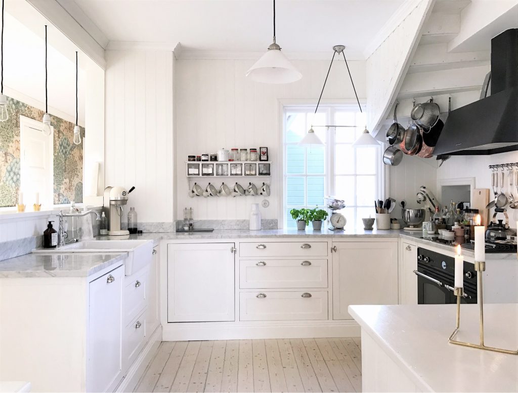 Tisdagsstädat och rent i vårt kök, ingen njuter mer än jag dessa dagar då hela huset doftar av såpa och det inte finns en endaste dammtuss någonstans. Idag fick jag en liten utmaning/förfrågan av en vän på Instagram som bad mig visa något som min bästa M hade gjort. Det var faktiskt inte så svårt alls att välja, det här platsbyggda köket var bland de första han fixade när vi flyttade in här och det var en alldeles underbar känsla att få ställa sig och laga mat i ett riktigt kök efter månader av otaliga restaurangbesök och kokplattsfix.