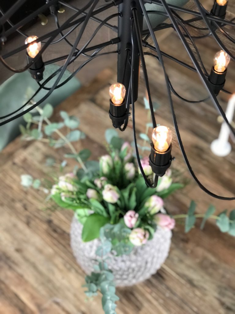 Redan i höstas bestämde jag mig för att vi skulle byta ut vår fina ljuskrona. Det handlade verkligen aldrig om att jag slutat tycka om den utan det handlade mest om vad som var praktiskt. Så fort hösten och mörkret kom gick helt enkelt åtta ljus per kväll för att inte rummet skulle bli tokmörkt. Jag provade med att skaffa fler lampor men det hjälpte inte, det var fortfarande alldeles för dunkelt.