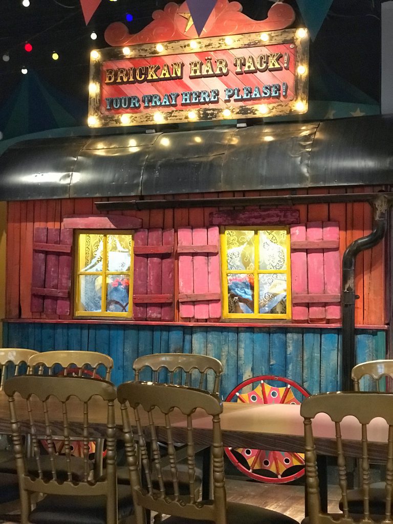Att restaurangen är som en utställning gör ju inte saken sämre! Älskar färgerna, ballongerna i taket, de fina vagnarna… Hela miljön är så drömmig och jag njuter verkligen av att vara där.